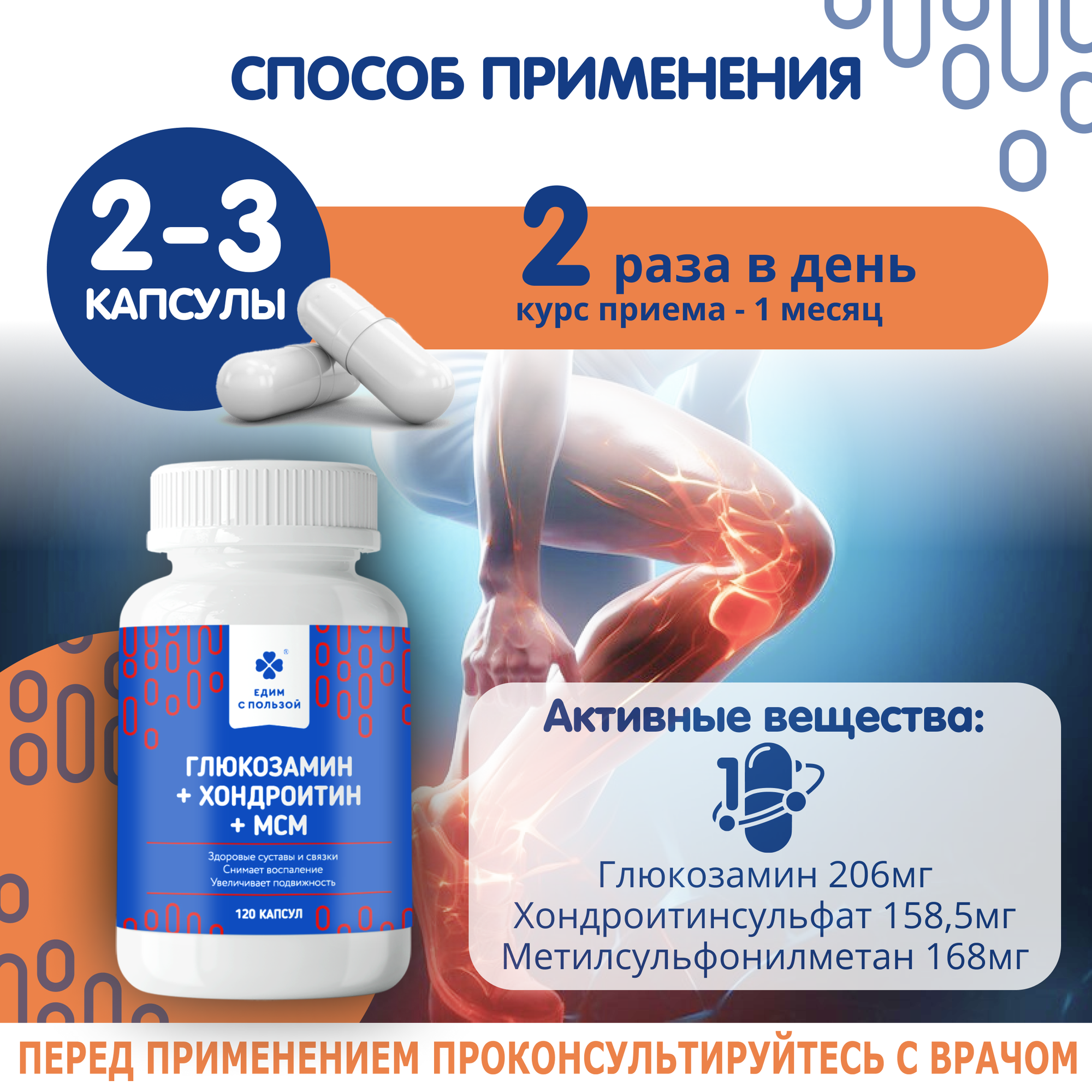 Глюкозамин Хондроитин МСМ в капсулах/ 120 капсул препарат для суставов и связок и хрящей информация: