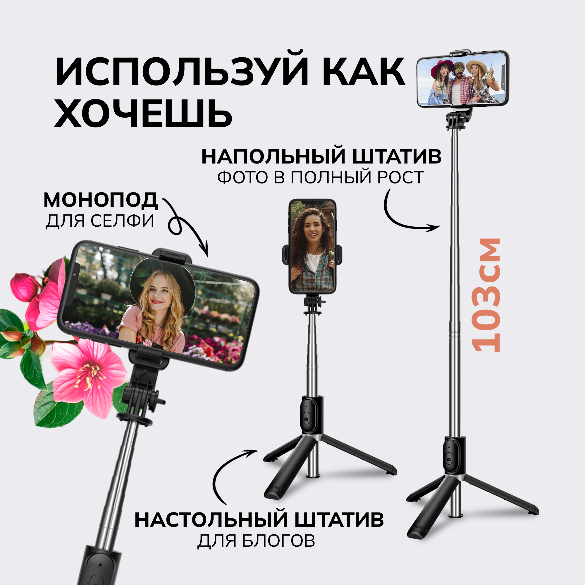 Держатель штатив для телефона, 140 см, пульт ДУ, подставка, селфи палка, стабилизатор камеры, монопод для селфи, черный 1 998 ₽