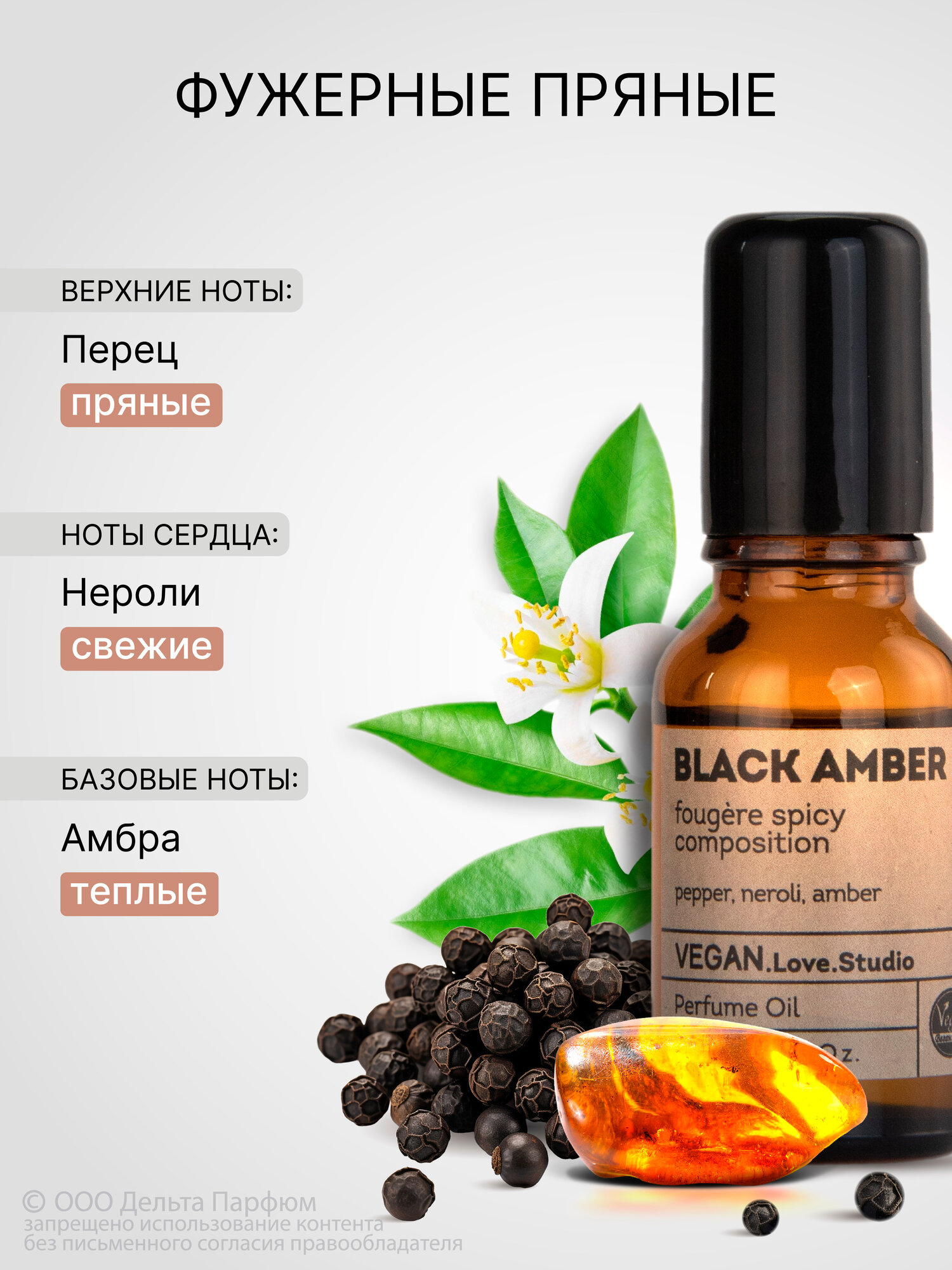 Масляные духи женские VEGAN Black Amber 15 мл Черный перец нероли амбра 327 ₽