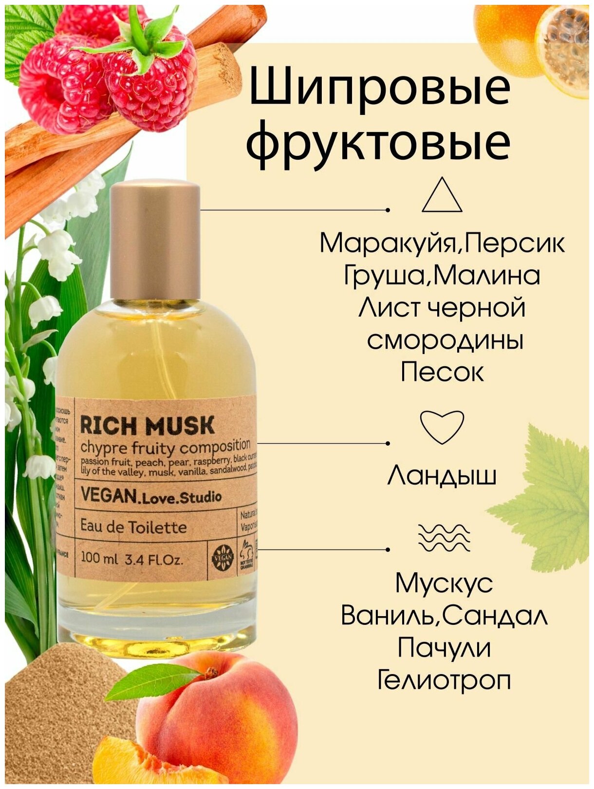 | Базовые ноты | ваниль, мускус, пачули |