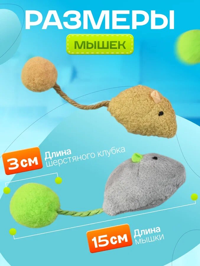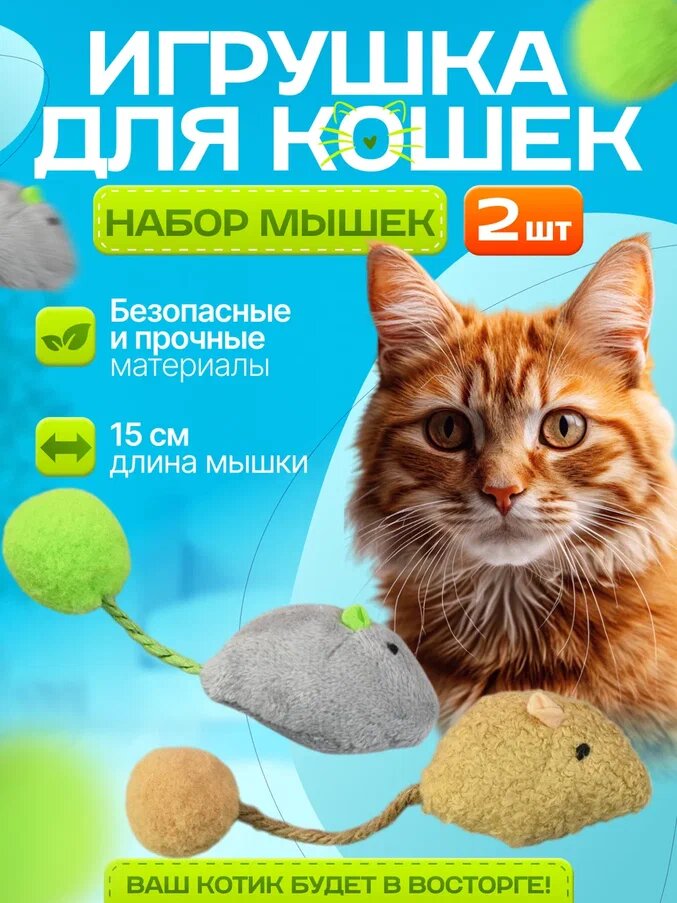 Игрушки для кошек с кошачьей мятой дразнилка / 2 мышки для кошек 199 ₽