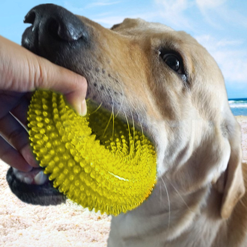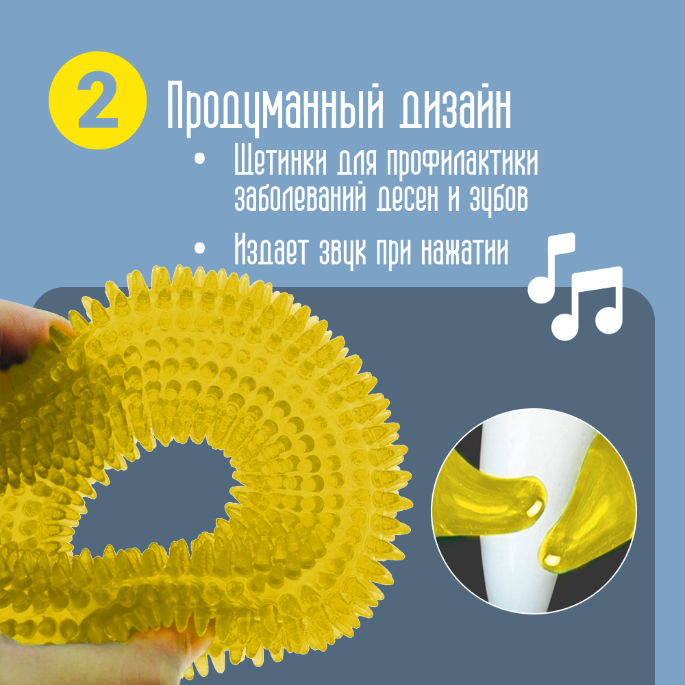 Игрушка для собак мелких и средних пород, кольцо- кристалл для грызения, чистки зубов, пищащая, желтая 375 ₽