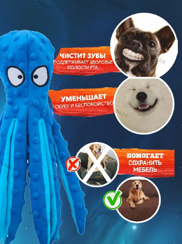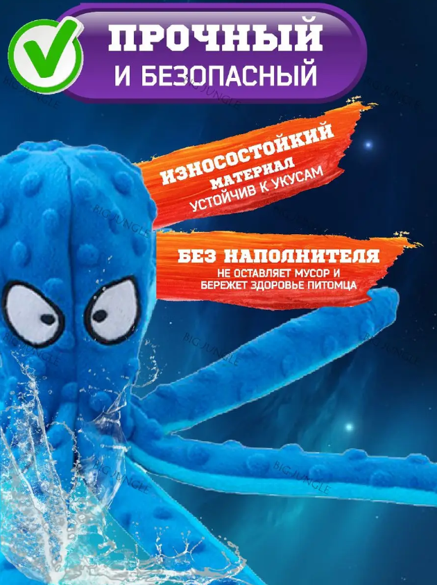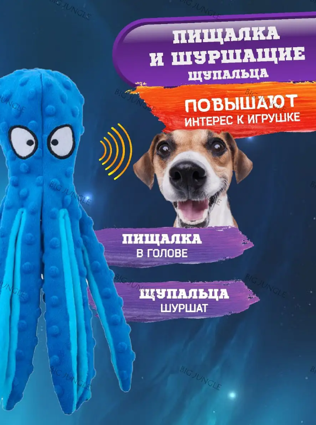 Отзывы на Мягкая игрушка для собак, шуршащий "Осьминог" синего цвета для активных игр