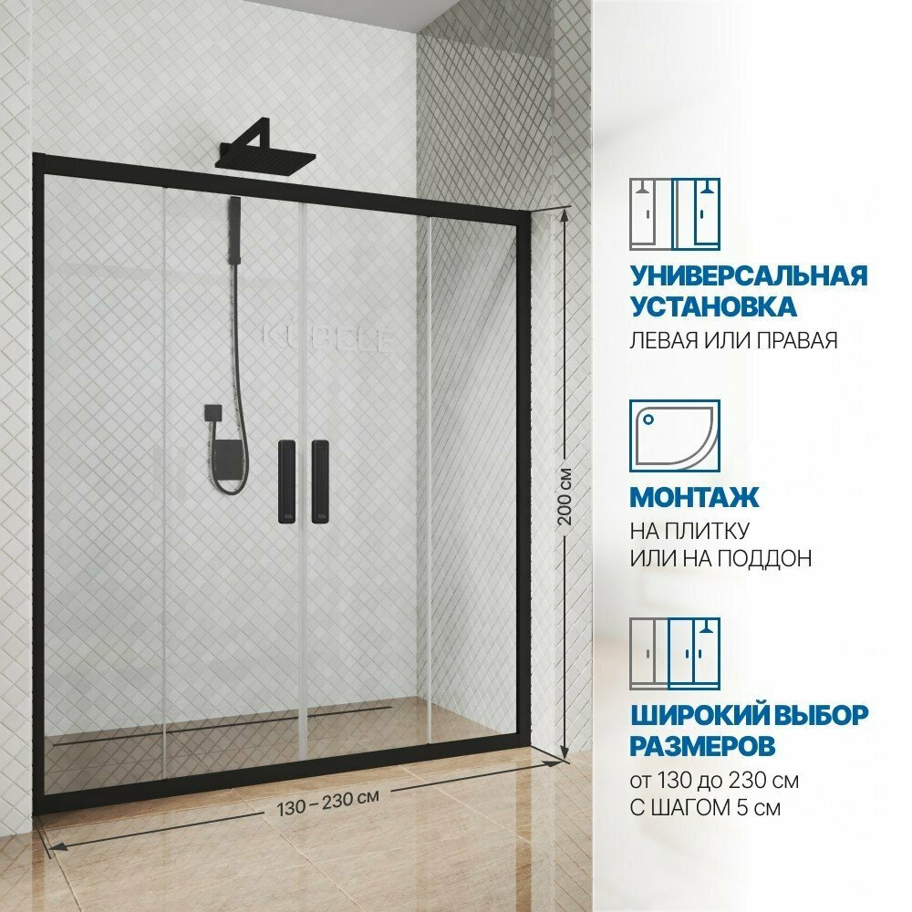 Дверь в душевую нишу GWMPKB019D4 130x200 см, цвет фурнитуры черный матовый, цвет стекла бесцветный, стекло закаленное 6 мм / 6 мм 33 500 ₽