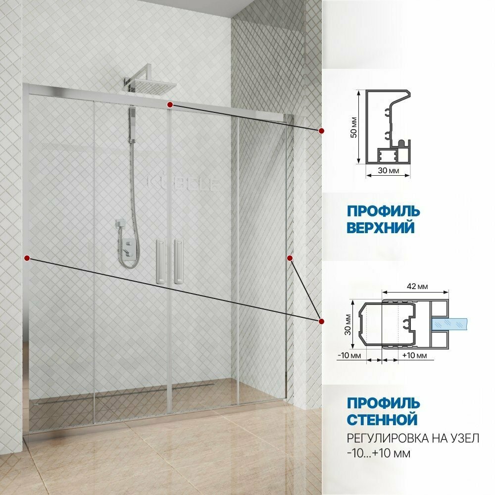 10 цен на Дверь в душевую нишу GWMPKB019D4 195x200 см, цвет фурнитуры хром блестящий, цвет стекла бесцветный, стекло закаленное 6 мм, открывание двери левое / правое