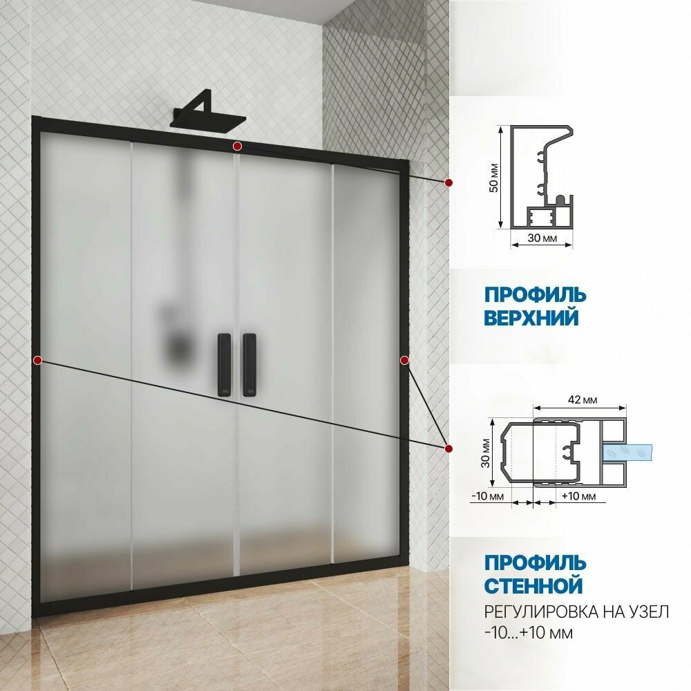 Дверь в душевую нишу GWMPKB019D4 150x200 см, цвет фурнитуры черный матовый, цвет стекла матовый, стекло закаленное 6 мм / 6 мм 41 300 ₽