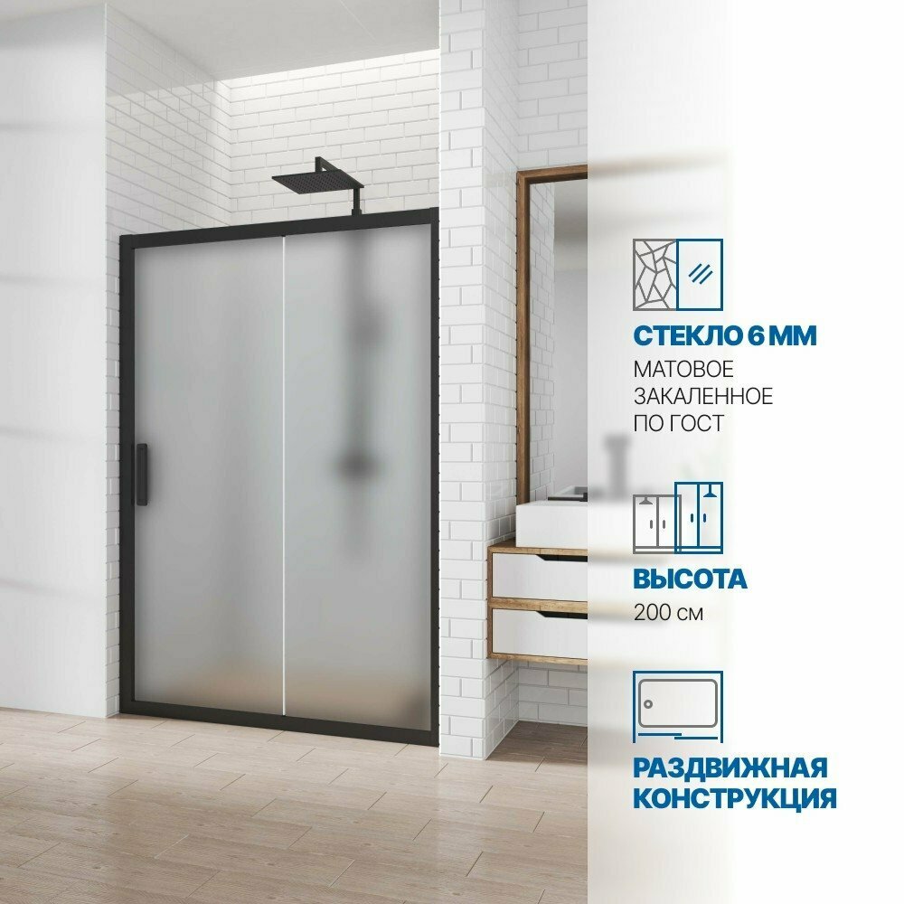 10 цен на Дверь в душевую нишу GWMPKB019D2 145x200 см, цвет фурнитуры черный матовый, цвет стекла матовый, стекло закаленное 6 мм, открывание двери левое / правое