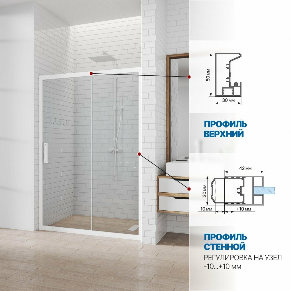 Дверь в душевую нишу GWMPKB019D2 155x200 см, цвет фурнитуры белый матовый, цвет стекла бесцветный, стекло закаленное 6 мм / 6 мм 33 500 ₽