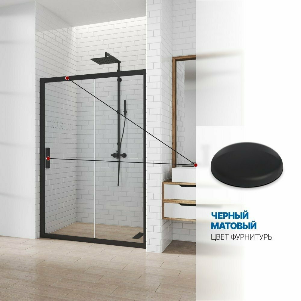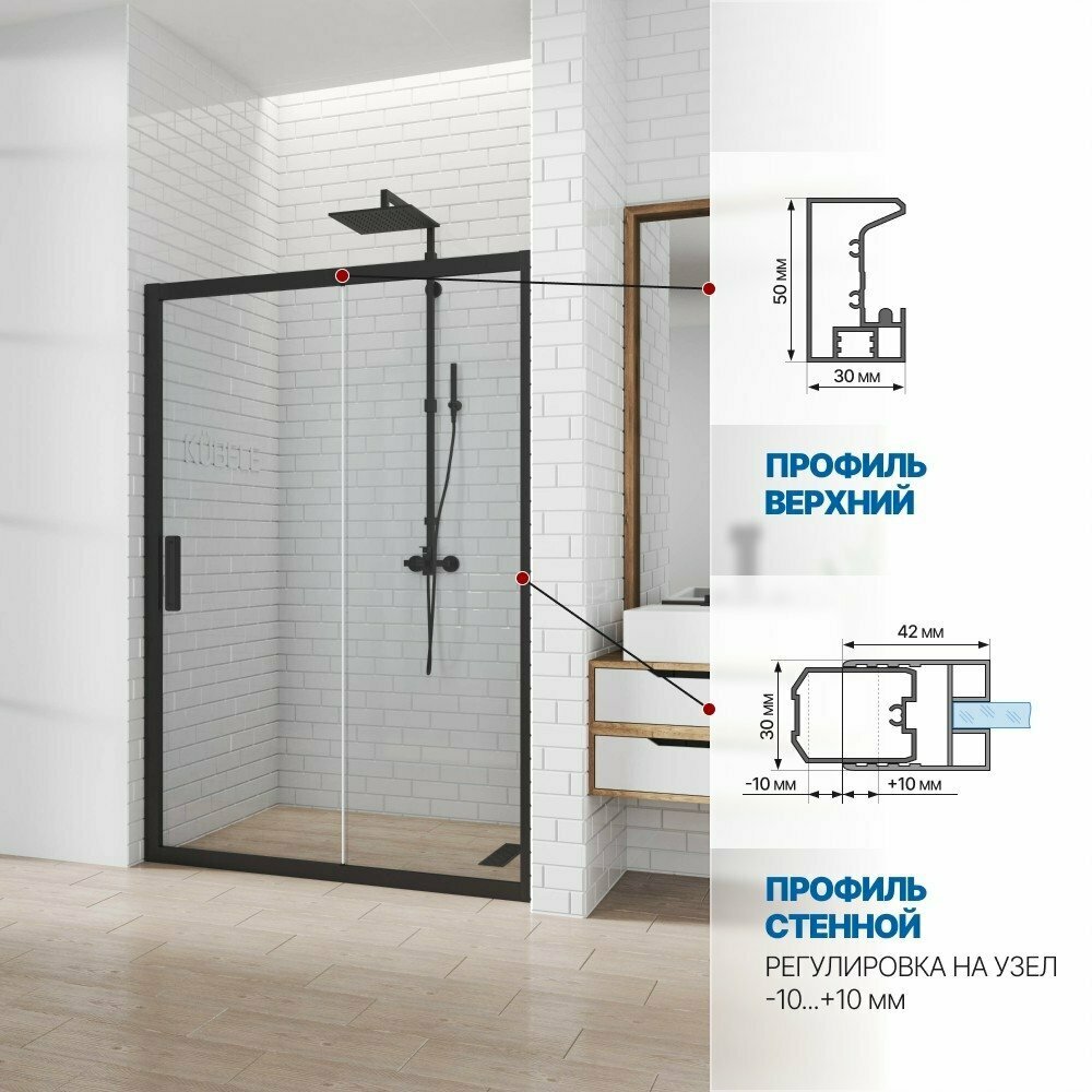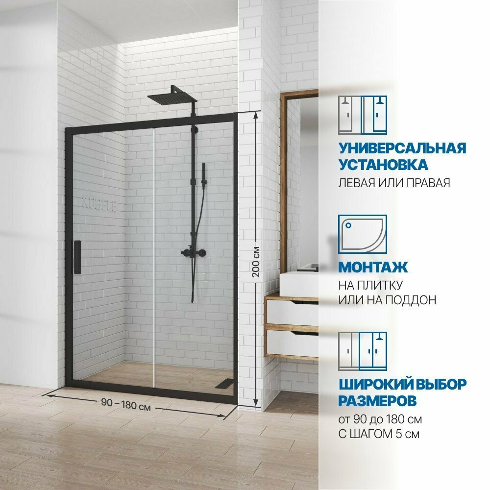 10 цен на Дверь в душевую нишу GWMPKB019D2 145x200 см, цвет фурнитуры черный матовый, цвет стекла бесцветный, стекло закаленное 6 мм, открывание двери левое / правое