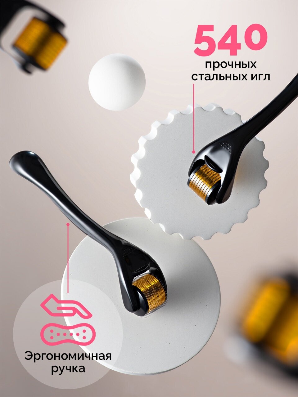 Мезороллер для лица, REVOLUT, Роллер для роста бороды и волос, Дермароллер от морщин, Игла 2 мм, 540 игл