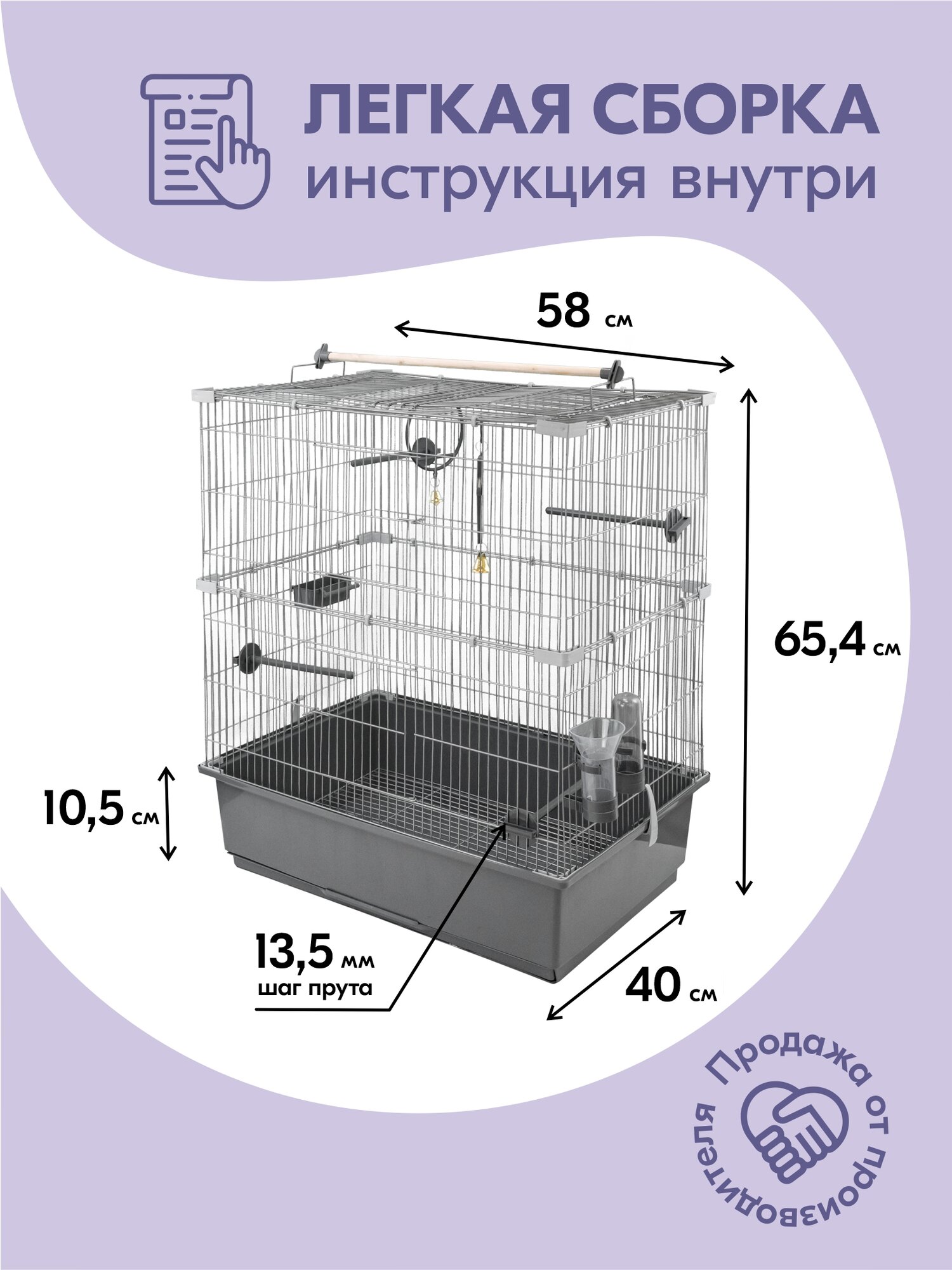 10 цен на Клетка для птиц, клетка для попугая, для канарейки ЛОФТ-2 разборная "PetTails", 2 секции, шаг прута 12мм, серая, 58 х 40 х 65,4см