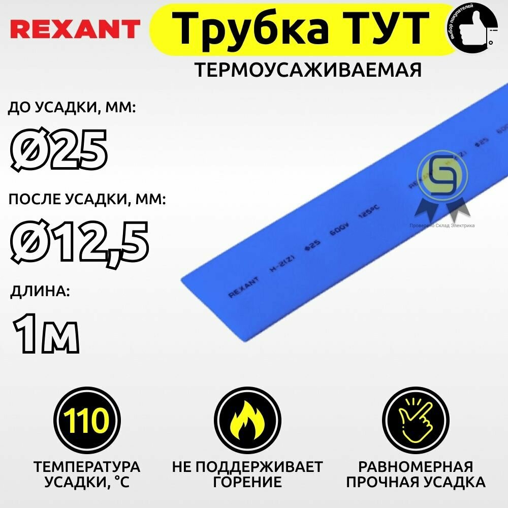 Термоусадка 25,0 / 12,5 мм, синяя 1 м REXANT