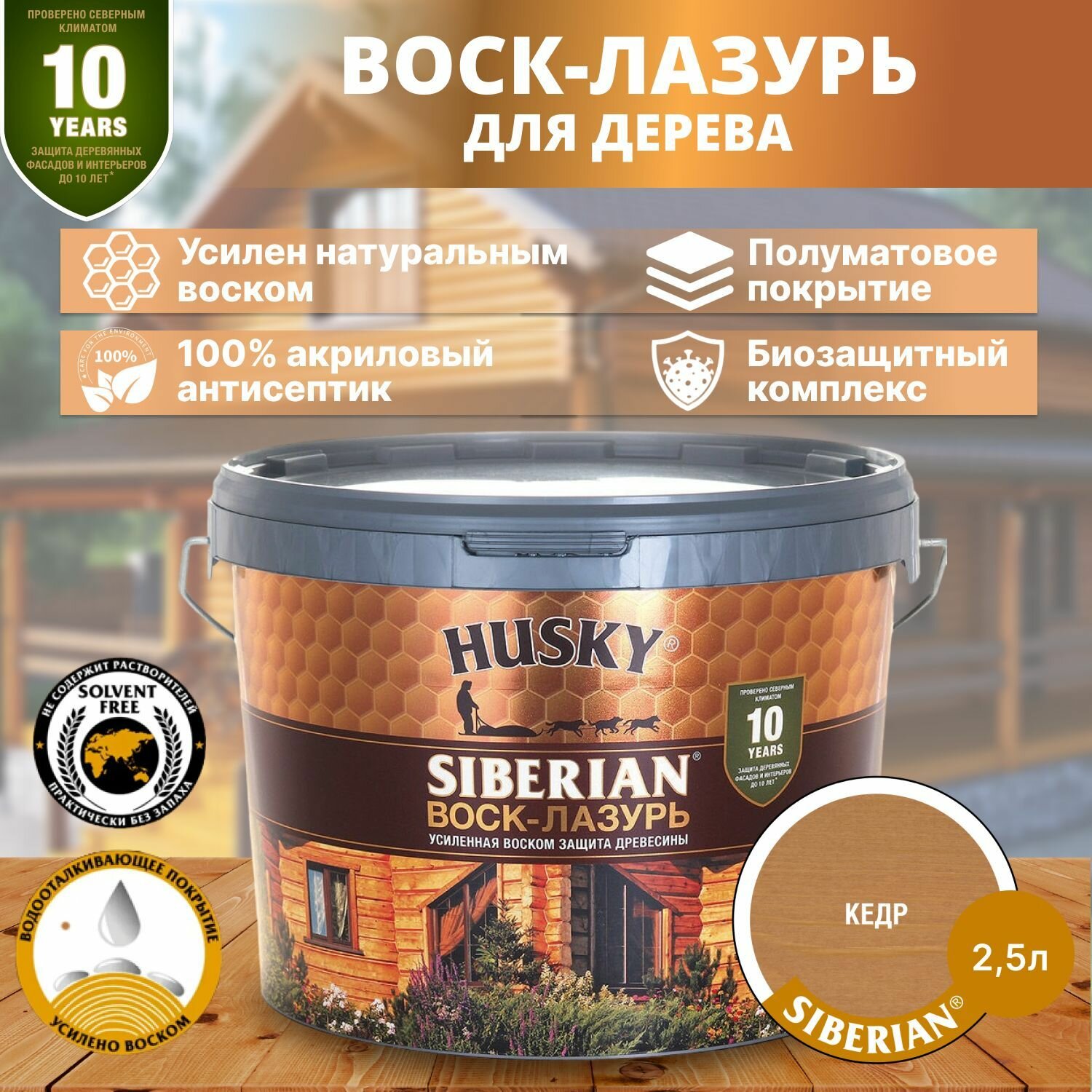 10 цен на HUSKY SIBERIAN Воск-Лазурь акриловый антисептик для древесины полуматовый кедр 2,5л 30000