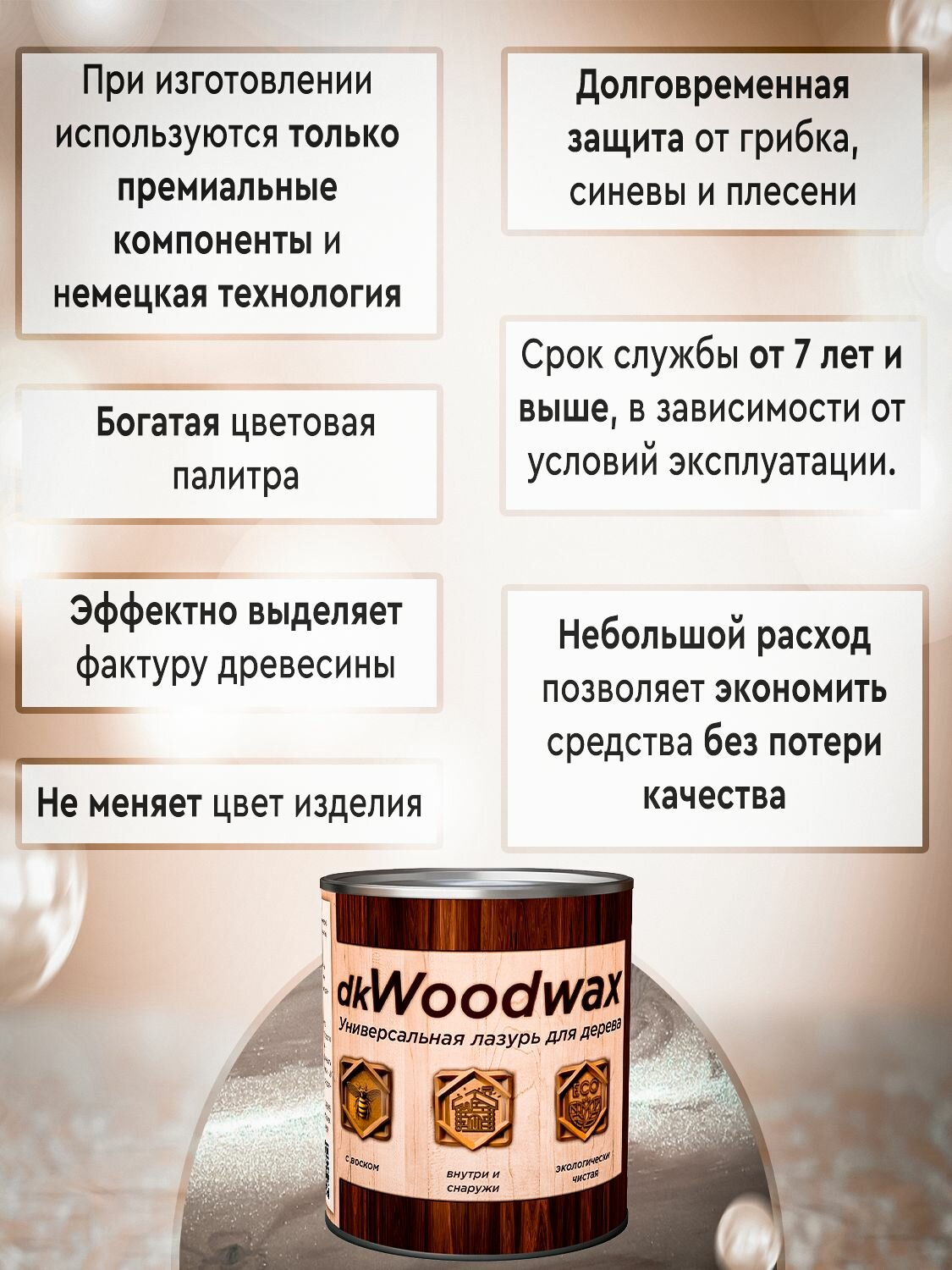 Лазурь для дерева с воском универсальная dkWoodwax строительный антисептик прозрачный, 3,2 литра