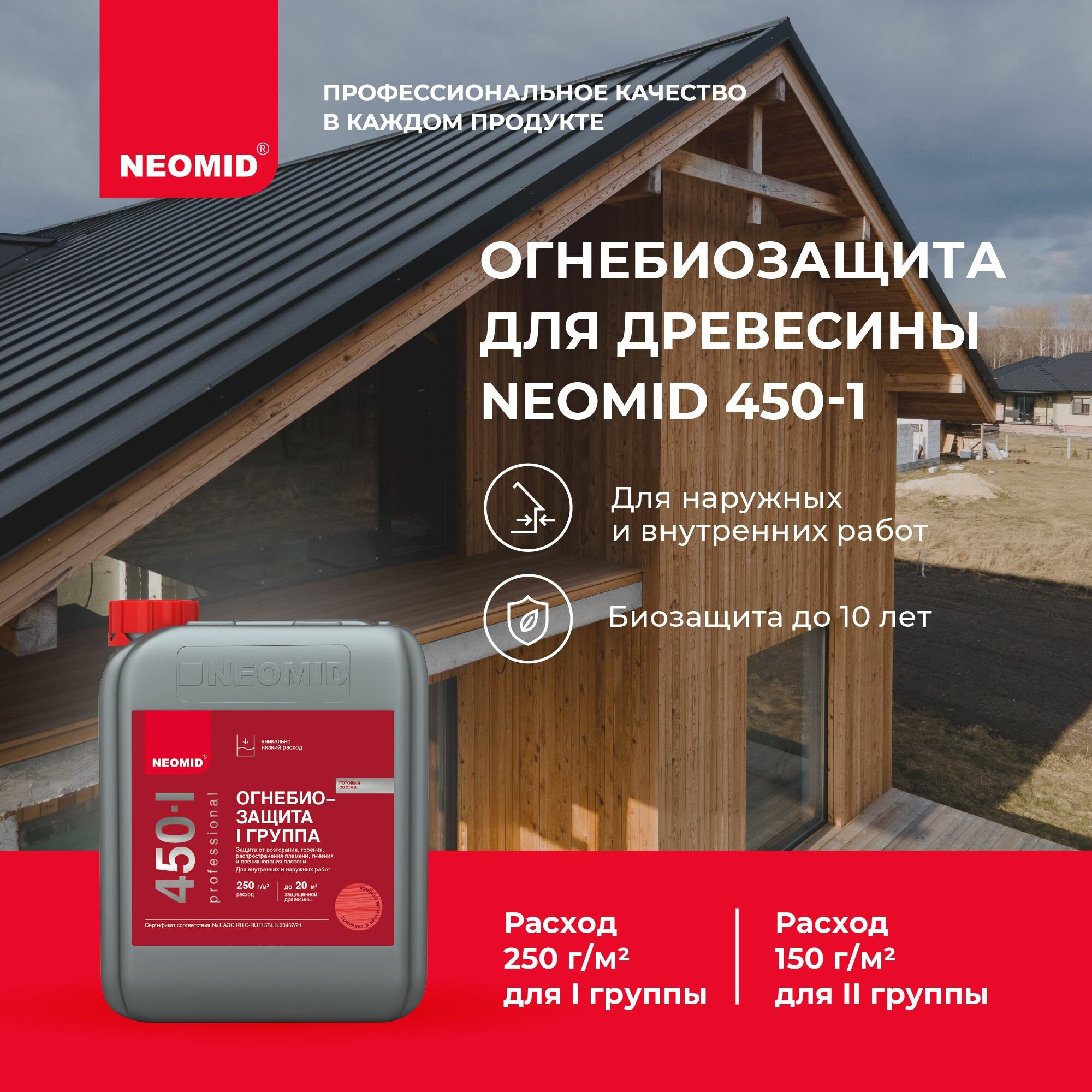 Огнебиозащитный состав для древесины Neomid 450, 1 группа, 10 кг, бесцветный
