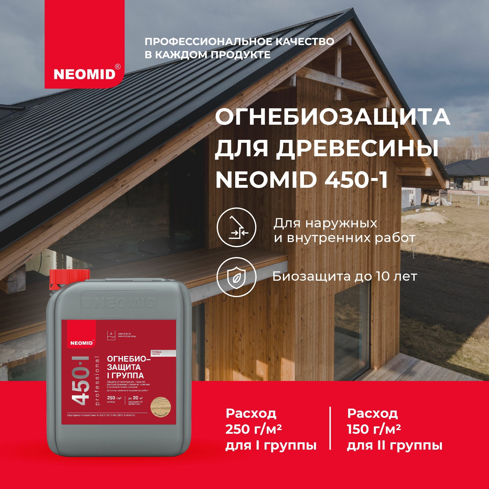 Огнебиозащитный состав для древесины Neomid 450, 1 группа, 10 кг, бесцветный