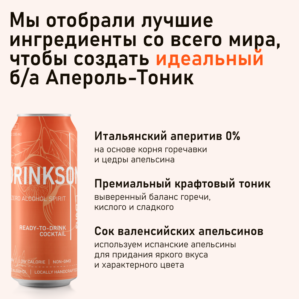 Апероль шприц Drinksome тоник безалкогольный коктейль, 20 шт информация: