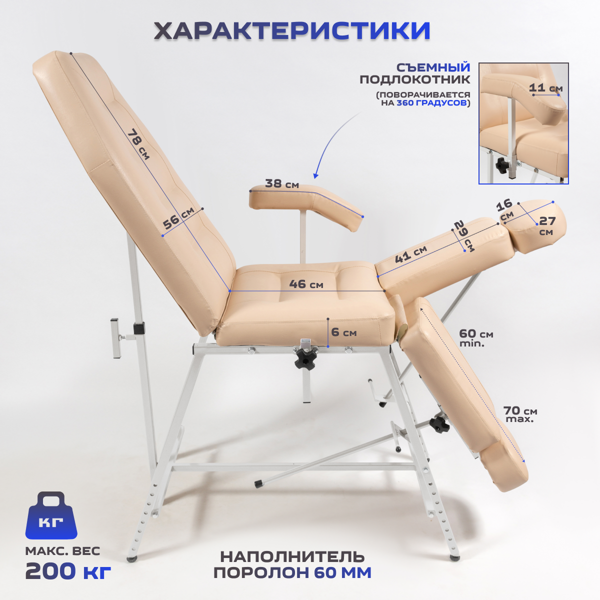Педикюрное косметологическое кресло Горизонт с регулировкой высоты 180х56 бежевый информация: