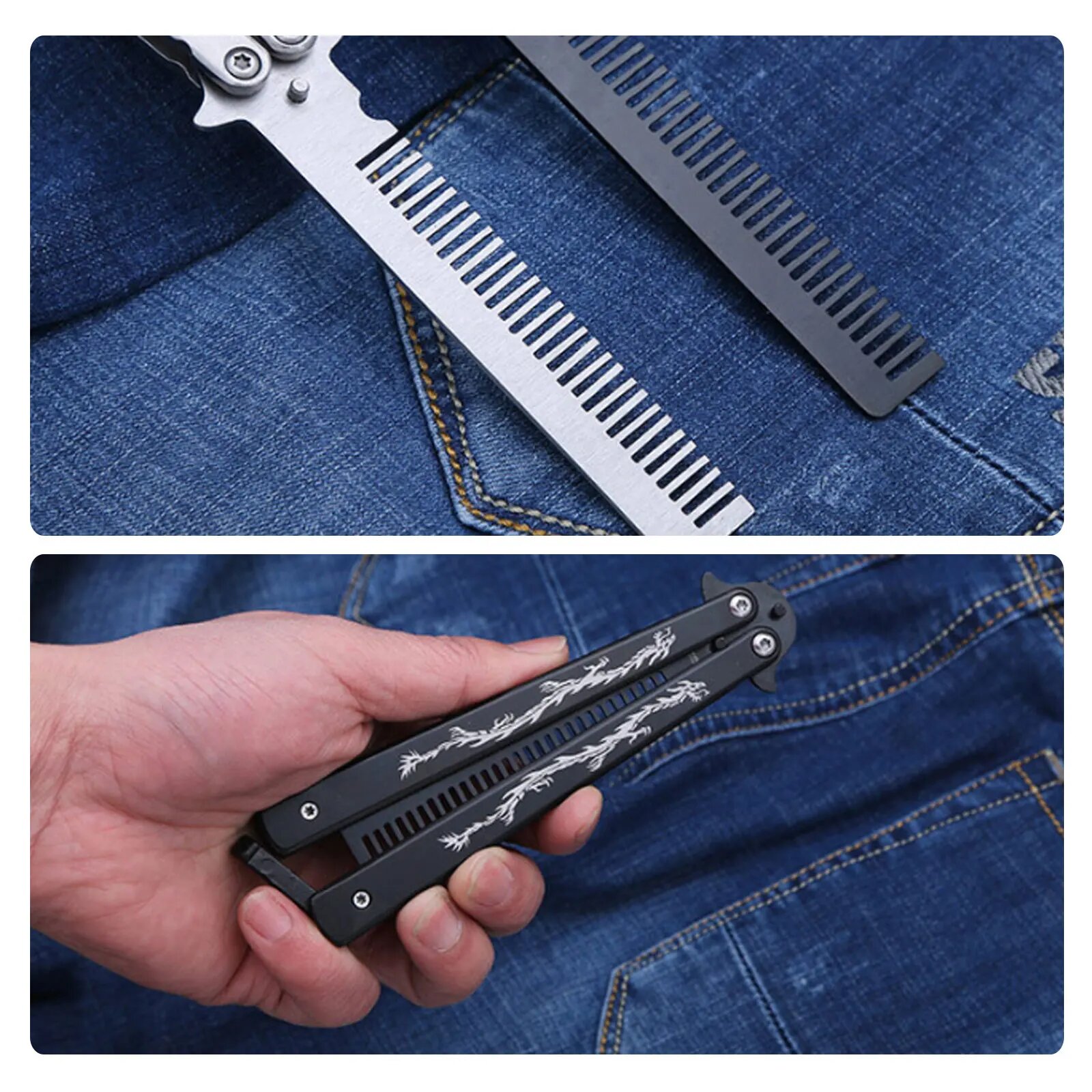 Нож бабочка расческа тренировочный для волос и бороды, складной, подарок ребенку, другу, мужу