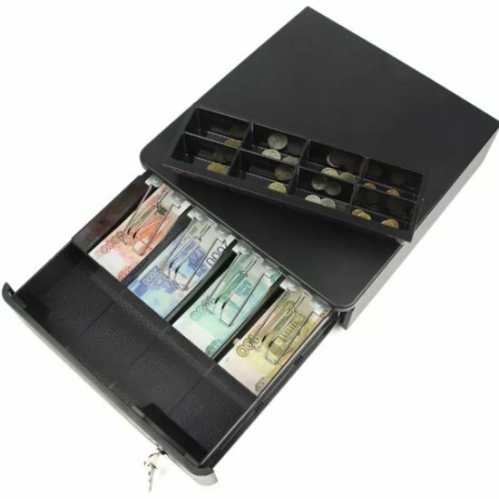 | Дополнительная информация | Отделения для банкнот под 4 купюры, отделения для монет 8 ячеек, держатели для банкнот с металлическими зажимами лоток для монет вынимающийся, подключение атол. |