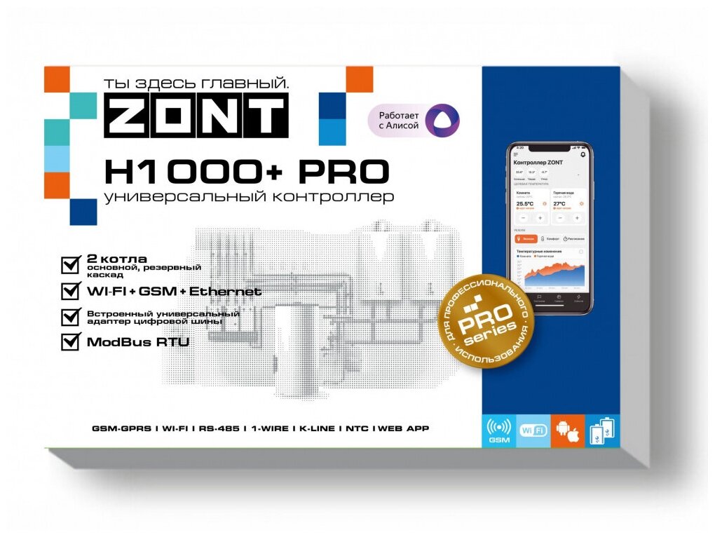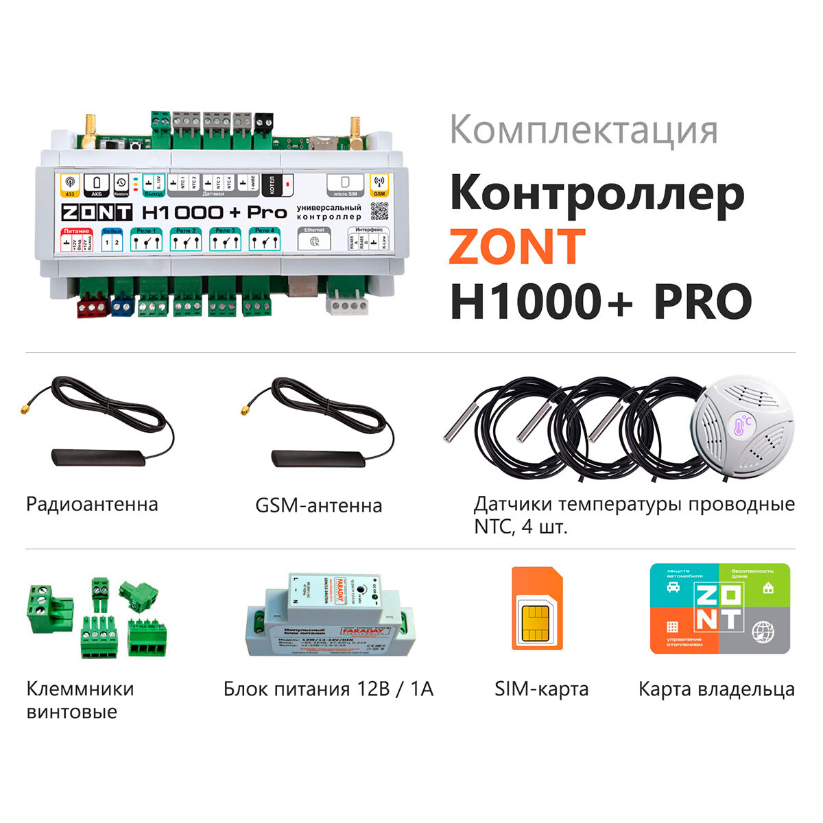 Контроллер универсальный GSM / Wi-Fi / Etherrnet ZONT H1000+ Pro информация: