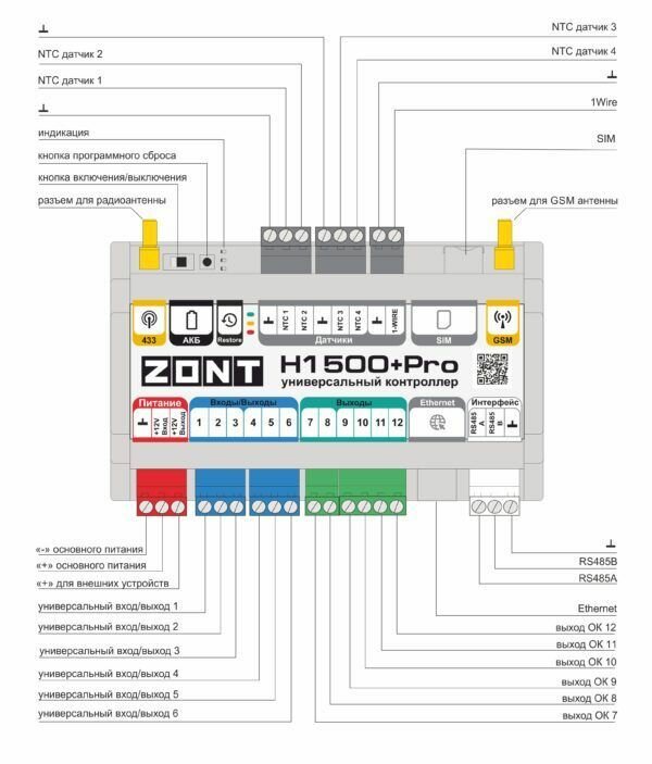 | Протокол связи | 1-Wire / Ethernet / GSM / RS-485 / Wi-Fi / ZONT |