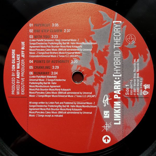 | Треклист | A1. Papercut (3:05) A2. One Step Closer (2:37) A3. With You (3:23) A4. Points Of Authority (3:20) A5. Crawling (3:29) A6. Runaway (3:04) B1. By Myself (3:10) B2. In The End (3:36) B3. A Place For My Head (3:05) B4. Forgotten (3:14) B5. Cure For The Itch (2:37) B6. Pushing Me Away (3:11) |