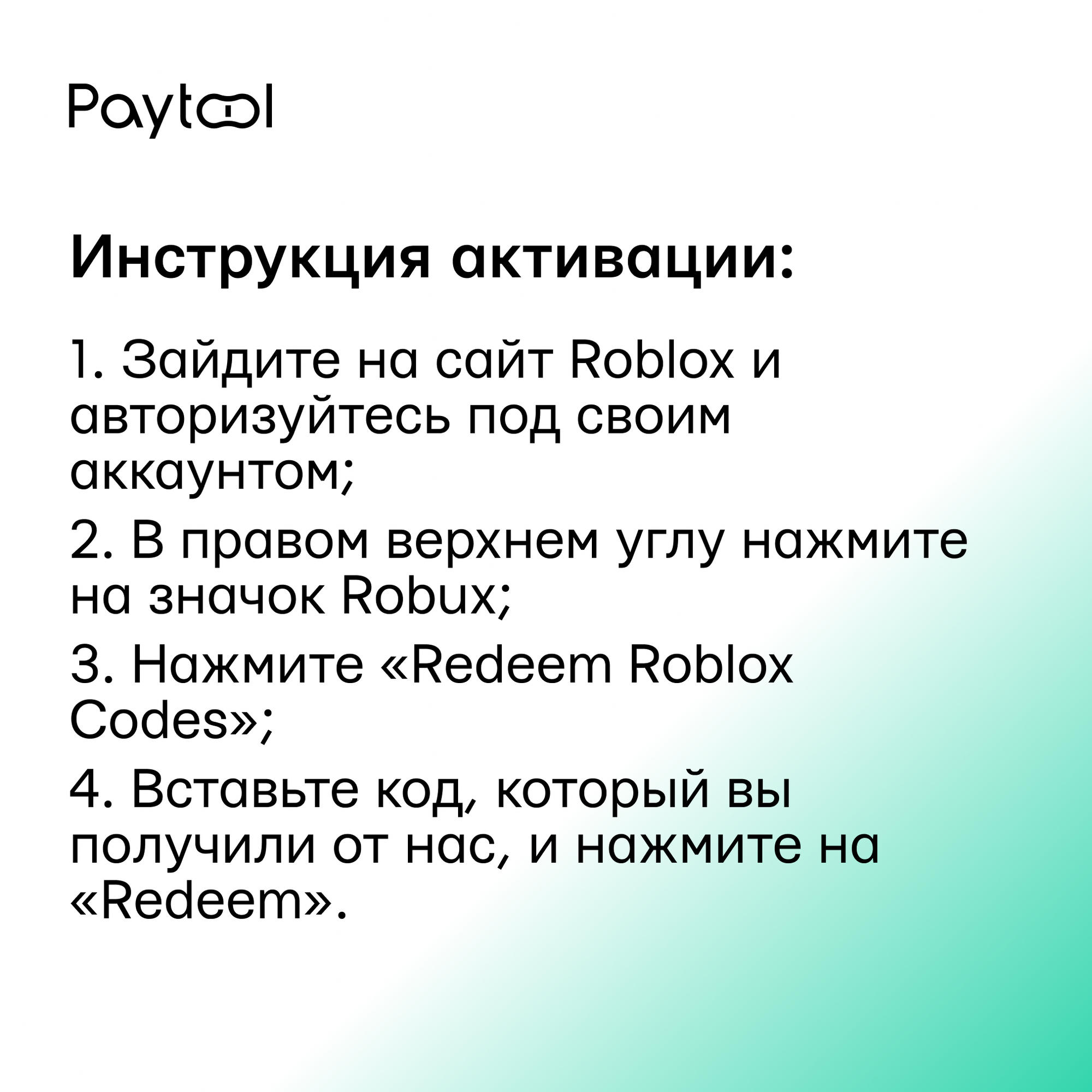 Карта пополнения Roblox на 100 Robux информация: