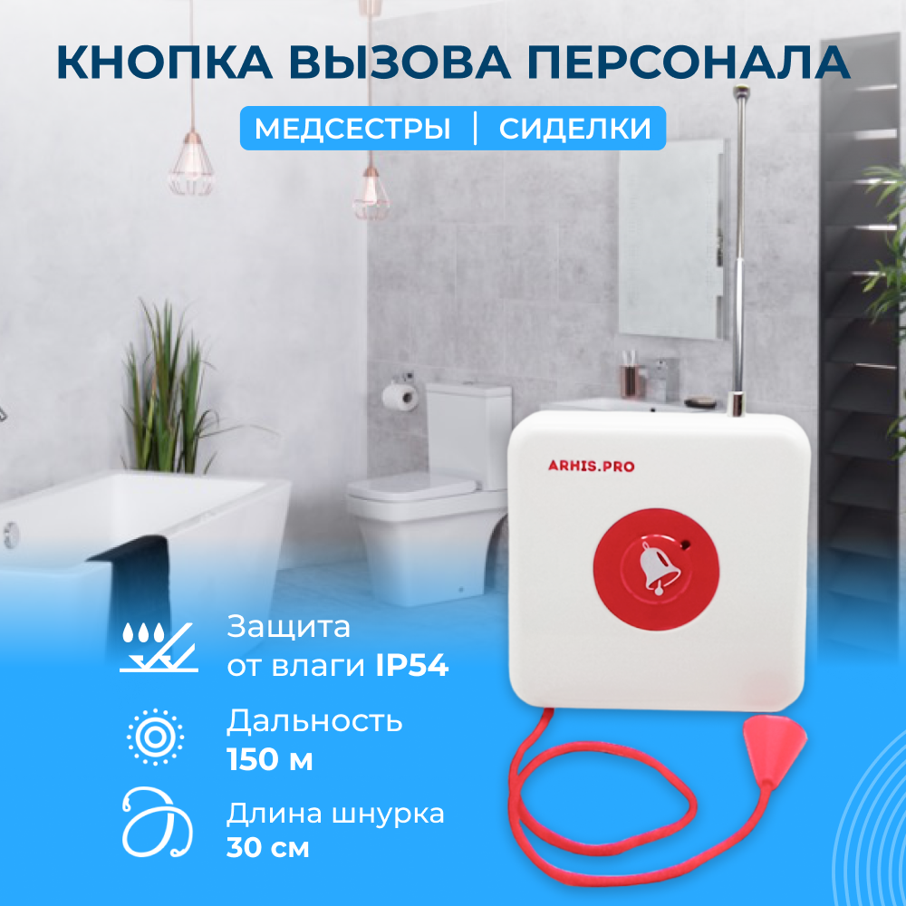 10 цен на Кнопка вызова персонала в санузел и туалет. Беспроводная система палатной сигнализации ARHIS PRO