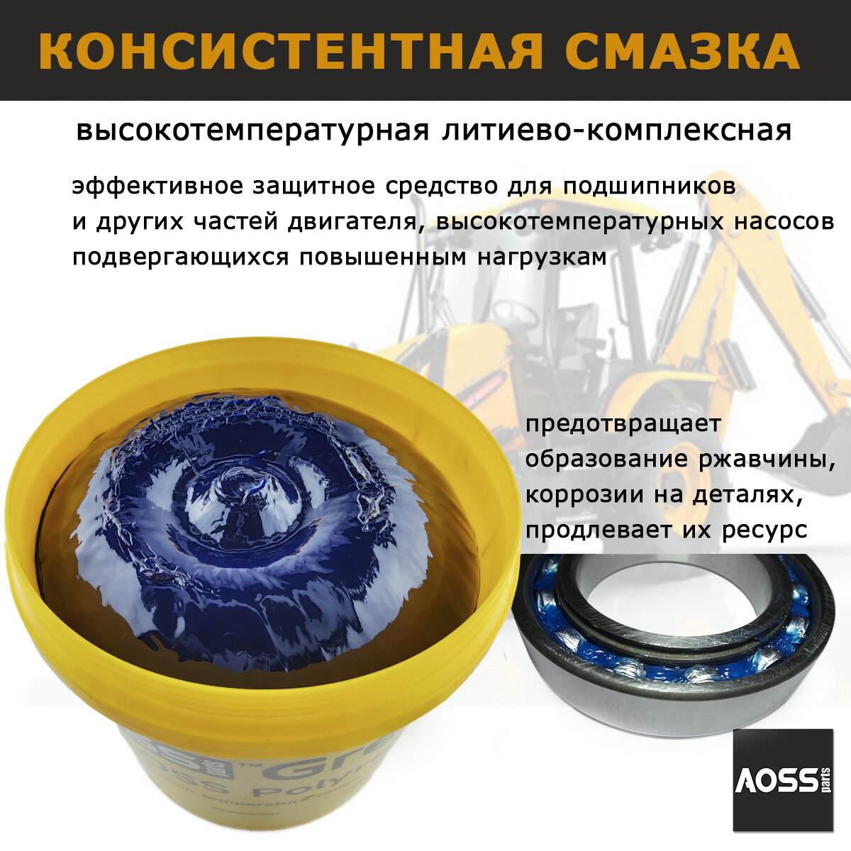 Смазка литиевая синяя высокотемпературная ведро 5кг AOSS Parts водостойкая Special HP GREASE информация: