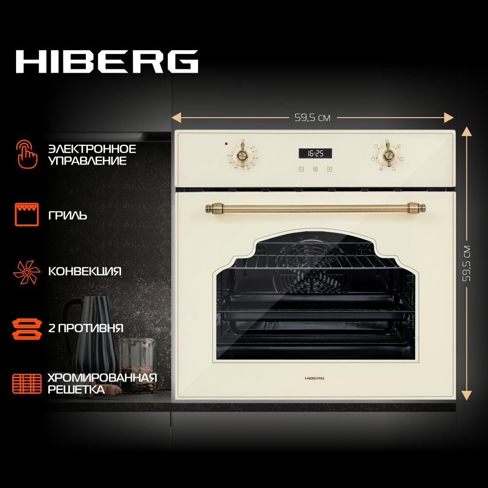 Духовой шкаф HIBERG VM 6382 YR электрический, 67 л, конвекция, гриль, ретро, бежевый