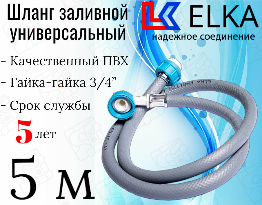 10 цен на Шланг заливной универсальный для стиральных и посудомоечных машин ELKA в упаковке 5 м (серый) / 500 см