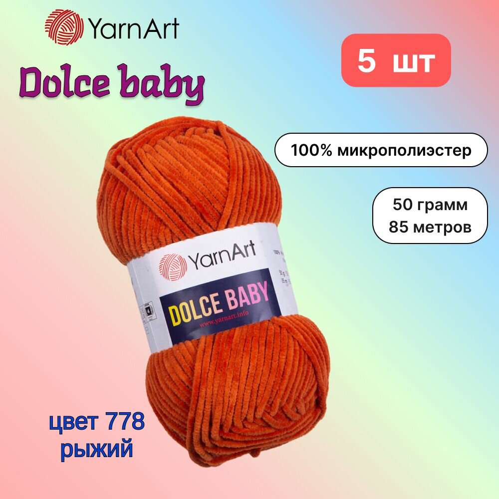 10 цен на Пряжа YarnArt Dolce baby Рыжий (778) 5 мотков 50 г/85 м (100% микрополиэстер) ярнарт дольче беби