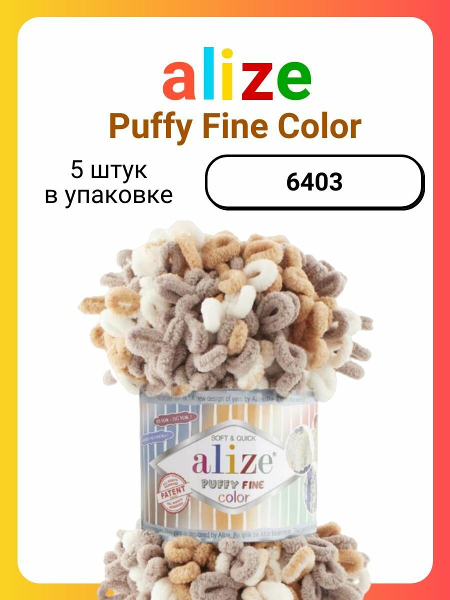 Пряжа PUFFY FINE COLOR (Alize), бежев-белый - 6403, 100% микрополиэстер, 5 мотков, 100 г, 14 м. 1 441 ₽