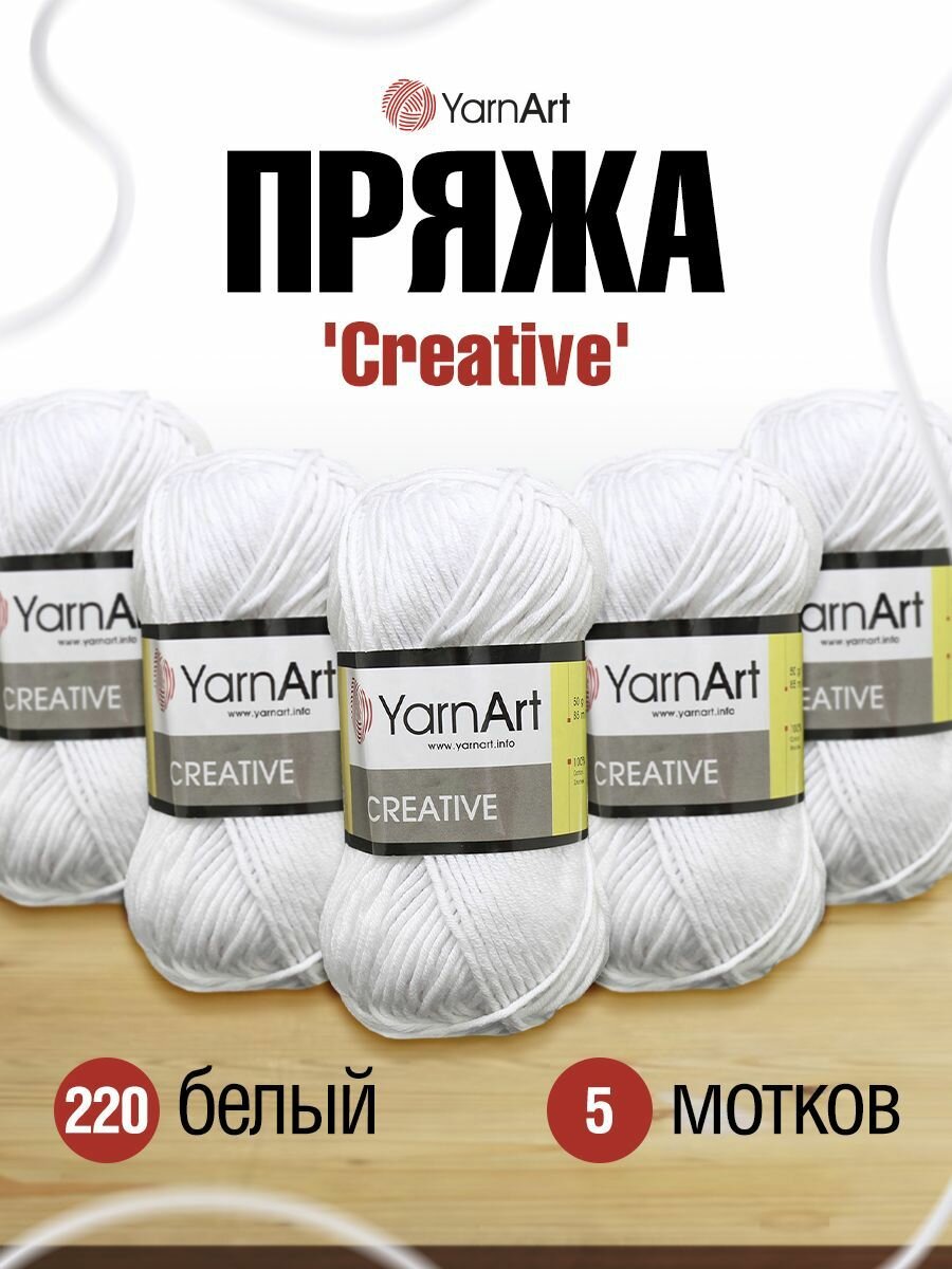 Пряжа YarnArt Creative белый (220), 100%хлопок, 85м, 50г, 5шт информация:
