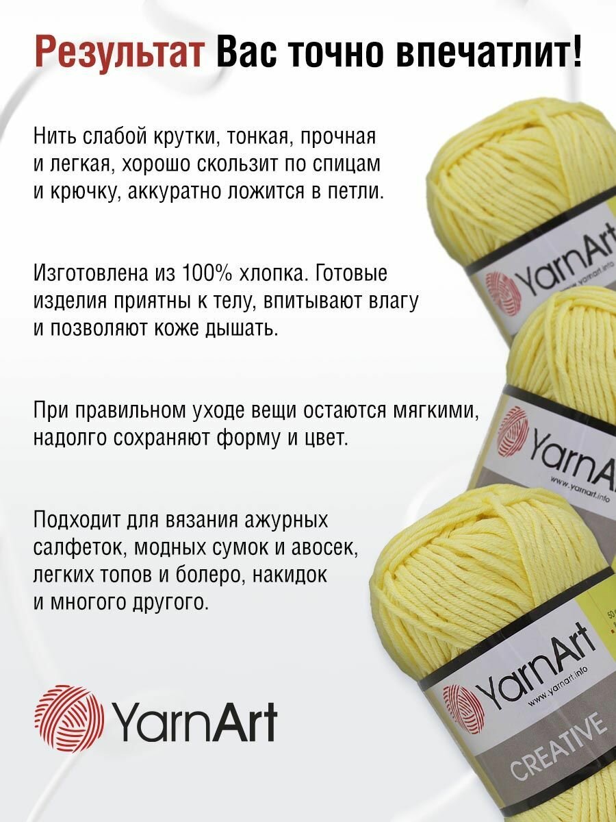 Пряжа YarnArt Creative 50г, 85м (ЯрнАрт Креатив) Нитки для вязания, 100% хлопок, цвет 224 светло-желтый, 1шт