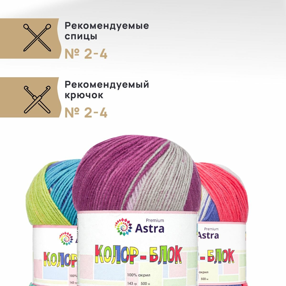 Пряжа Astra Premium 'Колор-блок' (Color-block), 143 г, 500 м (100% акрил), 2 мотка