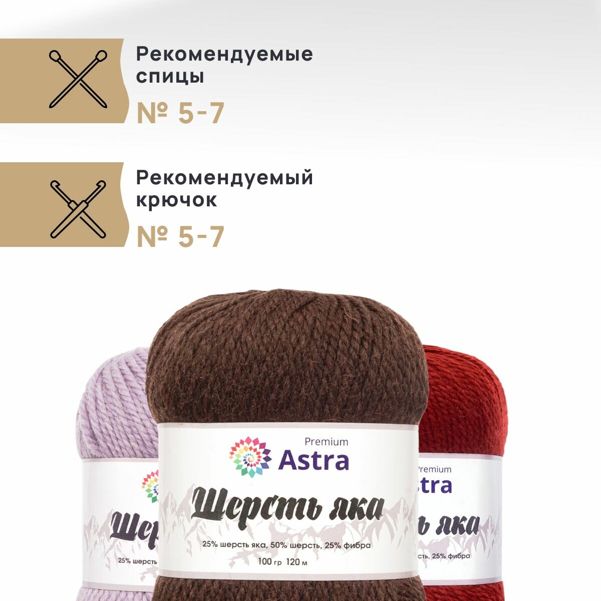Пряжа для вязания Astra Premium 'Шерсть яка' 100г, 120м (шерсть яка, шерсть, фибра) (11 горький шоколад), 2 мотка информация: