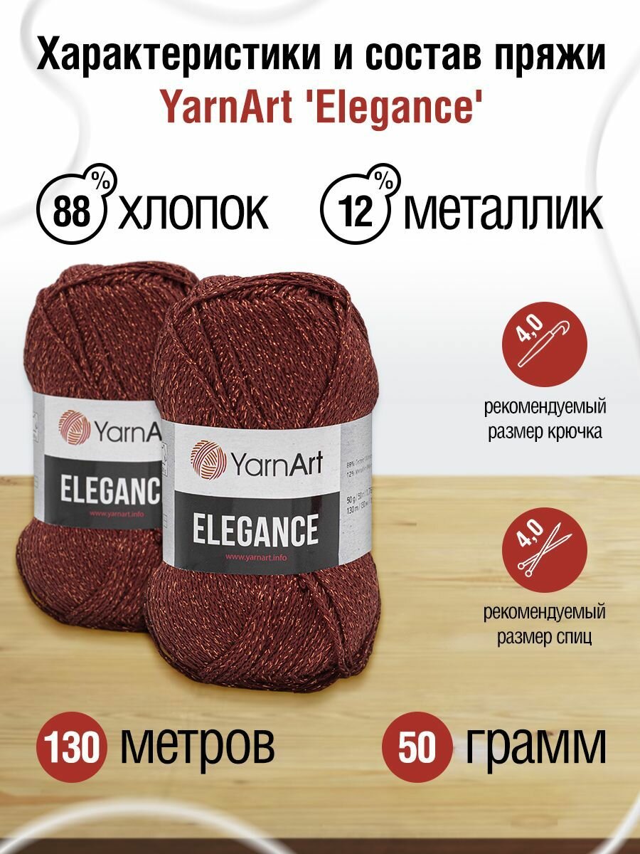 10 цен на Пряжа для вязания YarnArt 'Elegance' 50г, 130м (88% хлопок, 12% металлик) (122 красный), 5 мотков