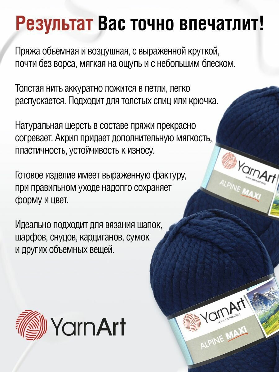 Отзывы на Пряжа для вязания YarnArt 'Alpine Maxi' 250г, 105м (40% шерсть, 60% акрил) (674 темно-синий), 2 мотка