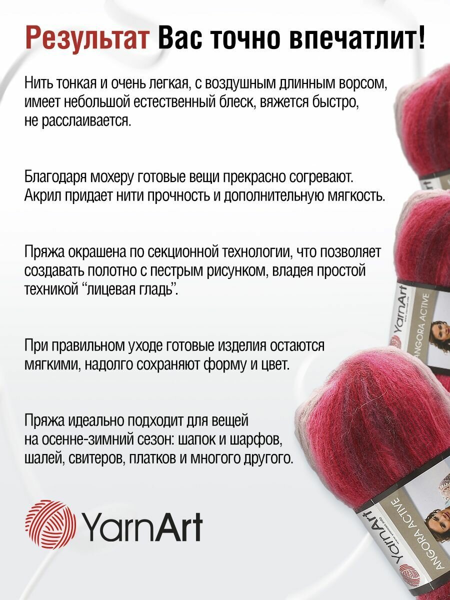 Пряжа для вязания YarnArt 'Angora Active' 100г, 500м (20% мохер, 80% акрил) (841 меланж), 5 мотков информация: