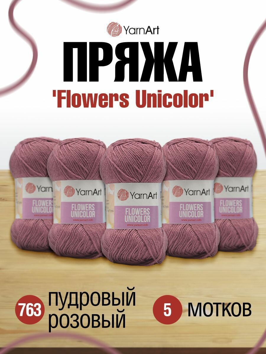 10 цен на Пряжа для вязания YarnArt 'Flowers Unicolor' 50г, 200м (55% хлопок, 45% полиакрил) (763 пудровый розовый), 5 мотков