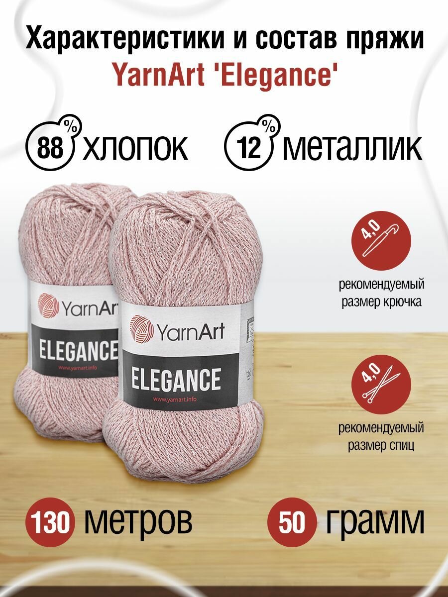 10 цен на Пряжа для вязания YarnArt 'Elegance' 50г, 130м (88% хлопок, 12% металлик) (108 пудровый), 5 мотков