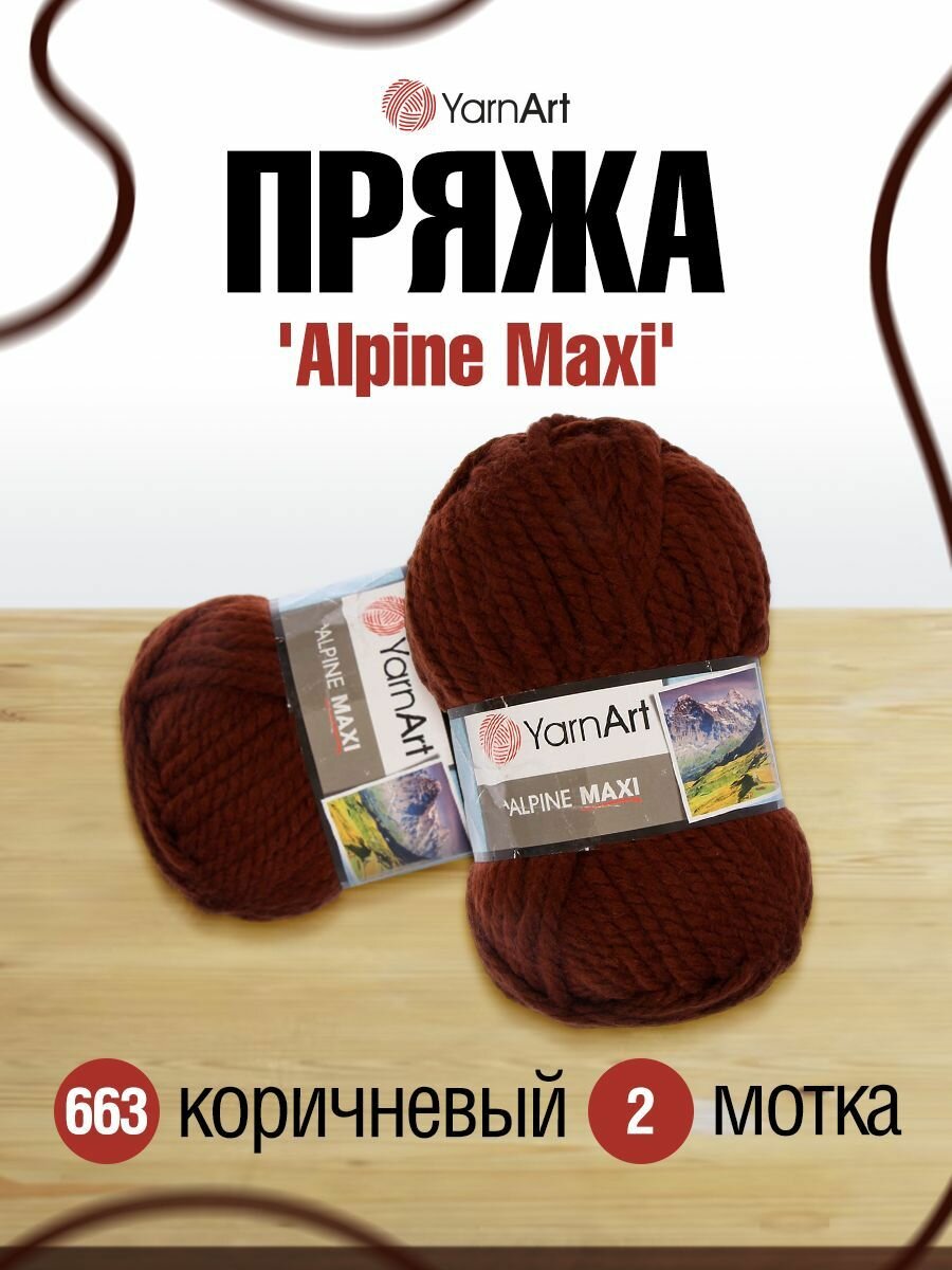 Пряжа для вязания YarnArt 'Alpine Maxi' 250г, 105м (40% шерсть, 60% акрил) (663 коричневый), 2 мотка информация: