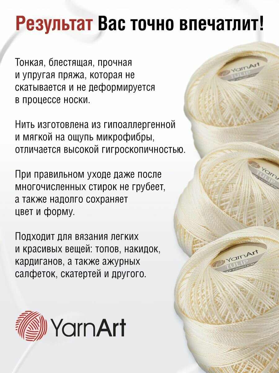 Пряжа для вязания YarnArt Tulip 401 белый 1 моток 50 гр/250 м 100% микрофибра 390 ₽