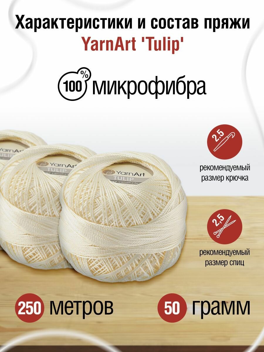 Пряжа для вязания YarnArt 'Tulip' 50г, 250м (100% микрофибра) (402 молочный), 6 мотков 698 ₽