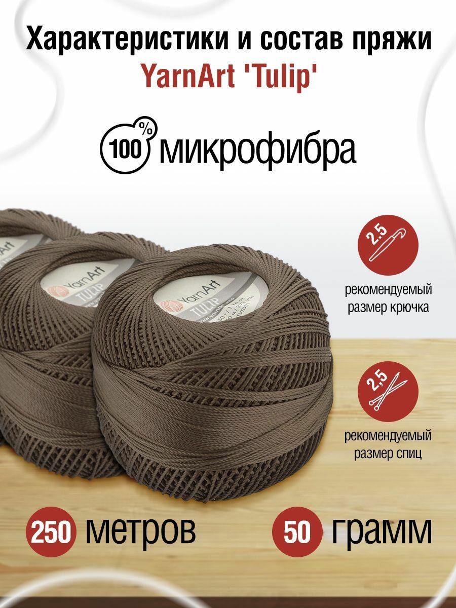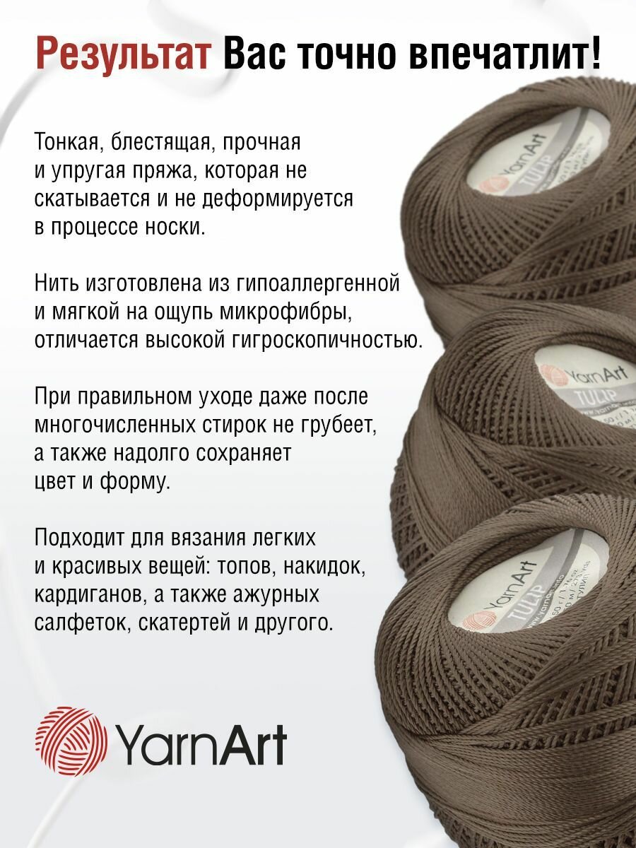 Отзывы на Пряжа для вязания YarnArt 'Tulip' 50г, 250м (100% микрофибра) (403 коричневый), 6 мотков