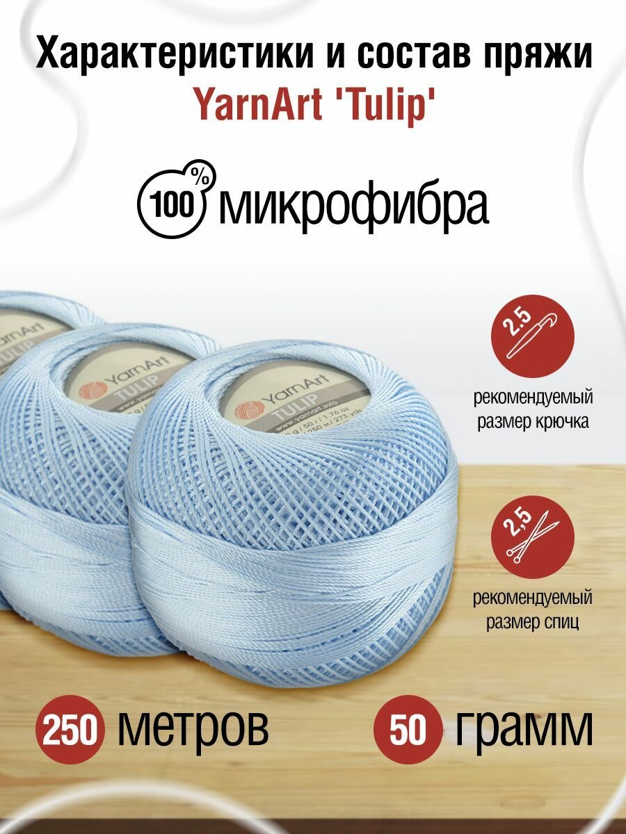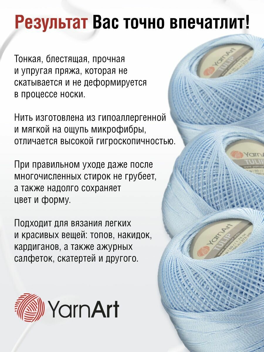 Пряжа для вязания YarnArt 'Tulip' 50г, 250м (100% микрофибра) (407 светло-голубой), 6 мотков информация: