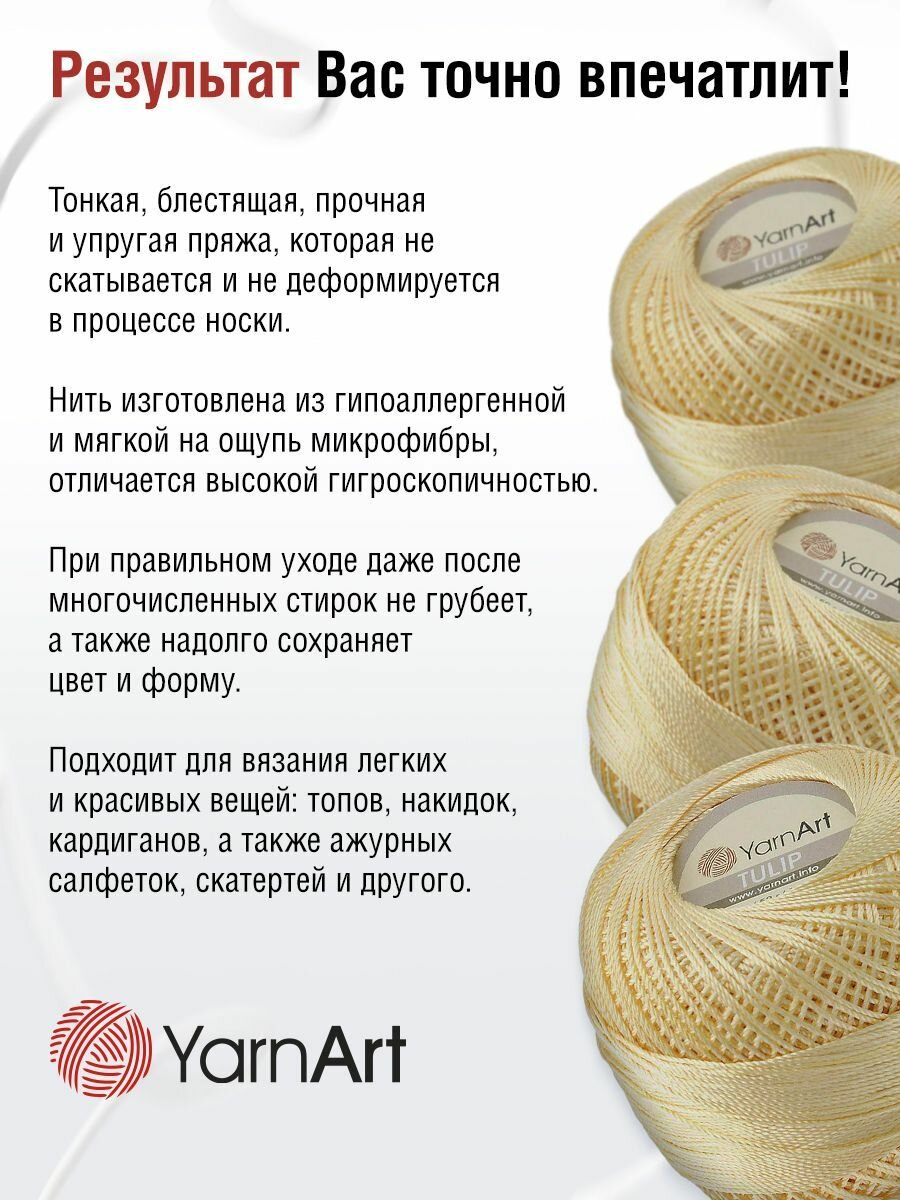Пряжа для вязания YarnArt 'Tulip', 50г, 250м (100% микрофибра) (402 молочный), 6 мотков