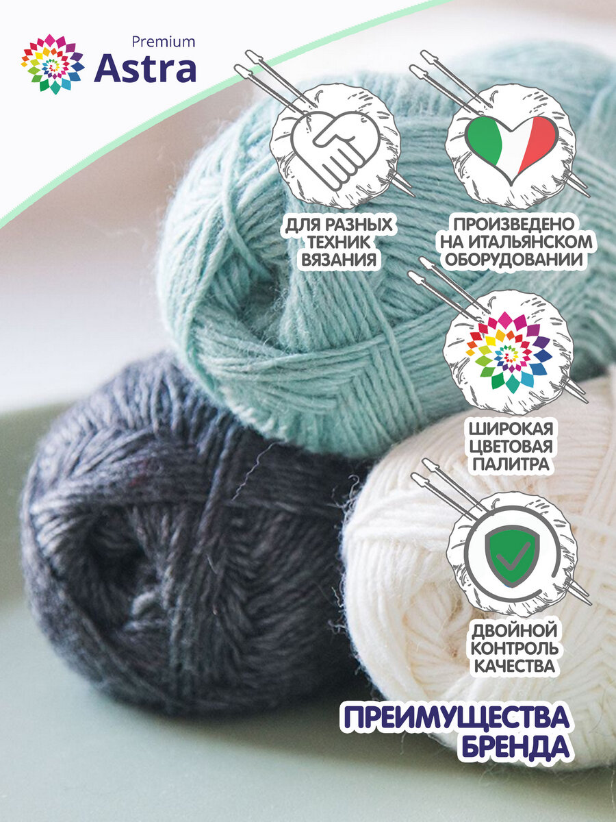 Пряжа Astra Premium 'Афродита', 100 г, 250 м (50% шерсть, 50% акрил), 3 мотка